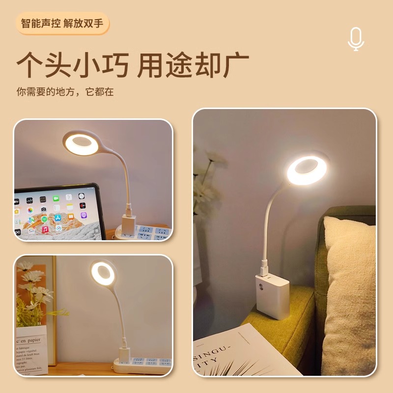 人工智能语音台灯控制灯USB声控灯感应灯led插口小夜灯一体床头灯