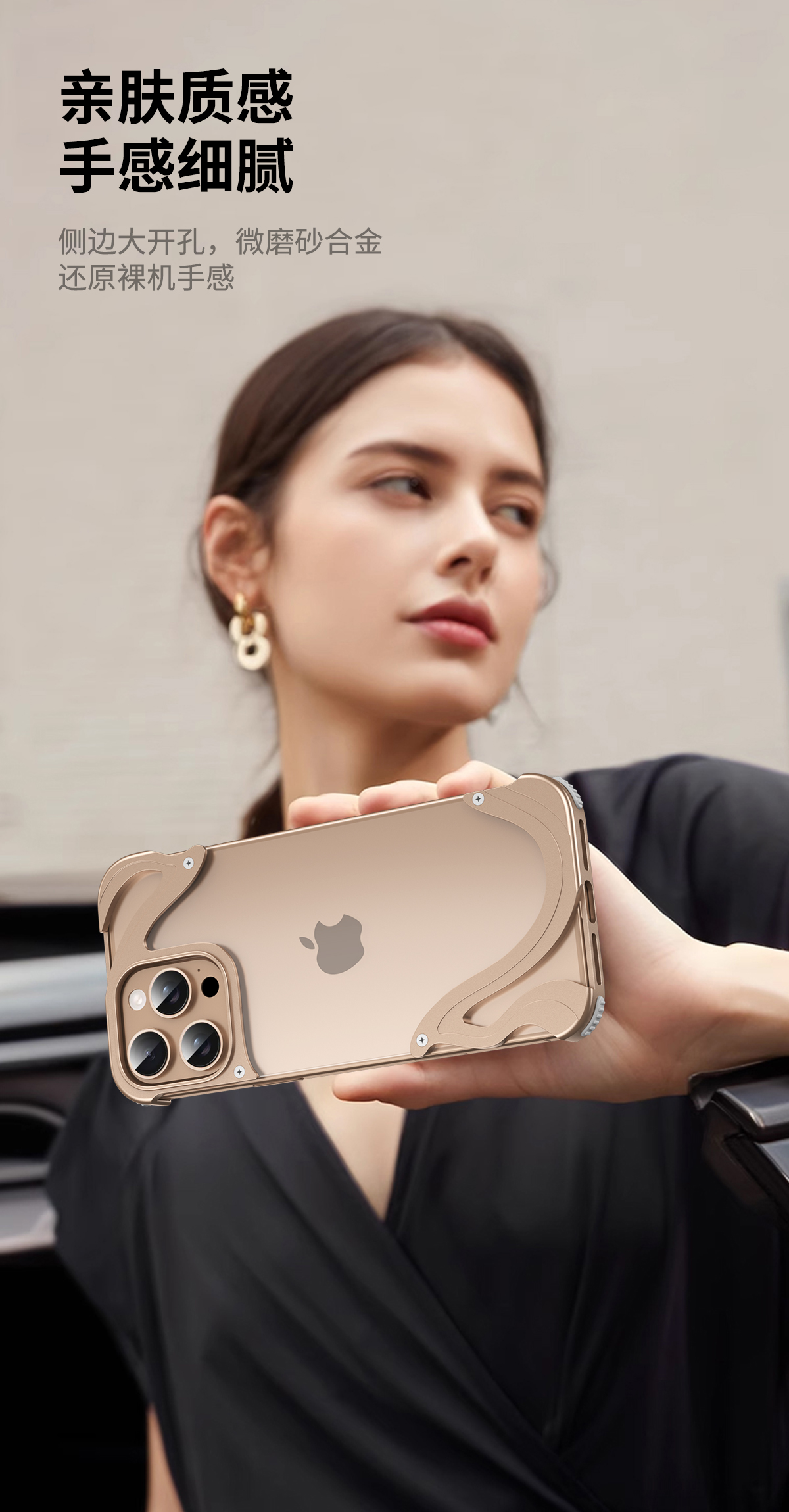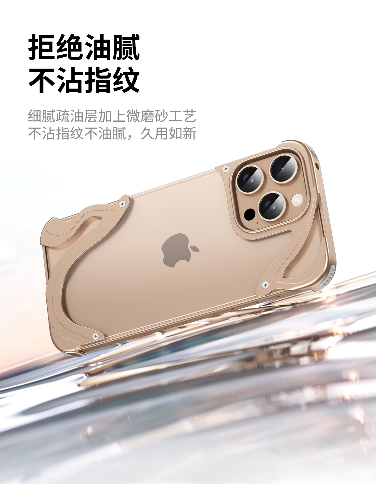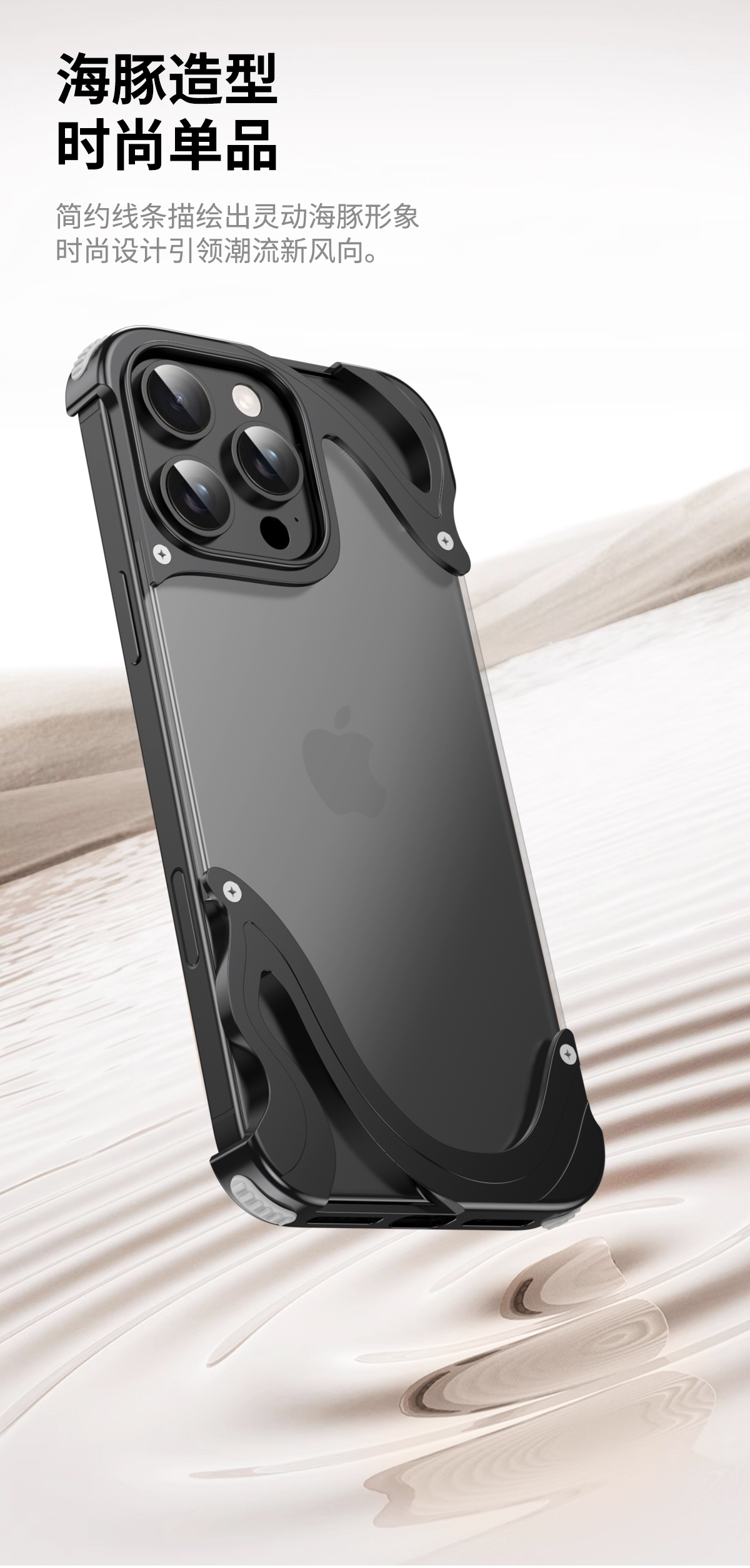海豚金属壳适用苹果16promax无边框手机壳iPhone16铝合金15pro亚克力防摔14pm高级感13p保护i16