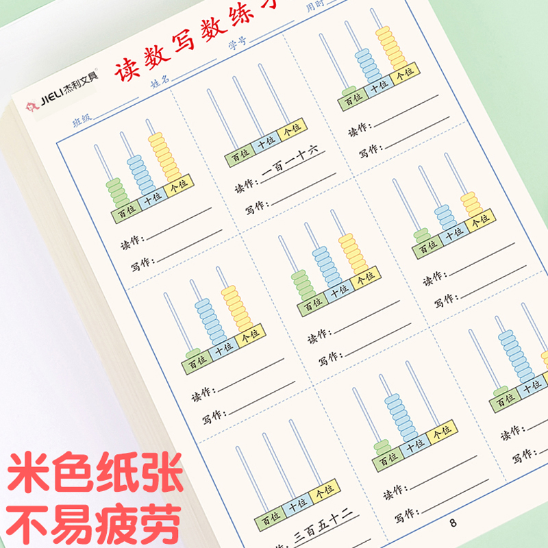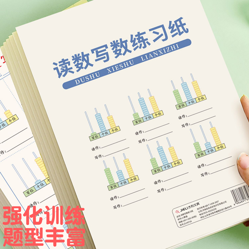 杰利小学生数学个十百千的读数写数练习纸一二年级专项练习题认识个位十位百位每日30题口算纸幼儿数字算术题