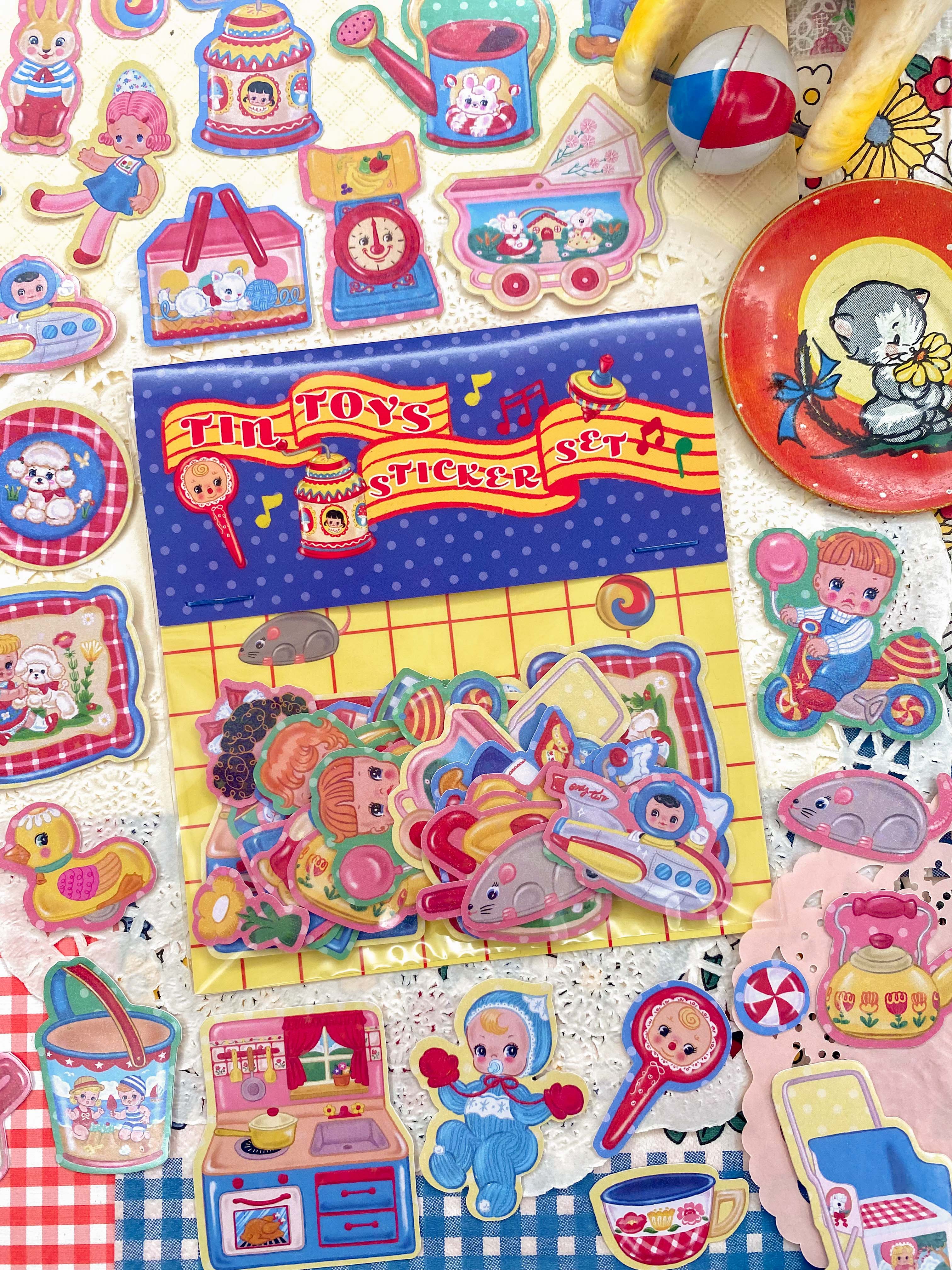 絮小饼onlytwo昭和童趣怀旧铁皮玩具可爱丰富贴纸包手帐闪闪贴纸