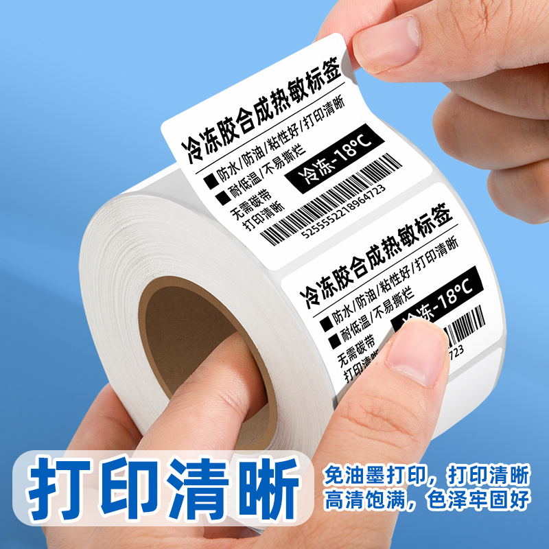 五5防打印热敏不干胶标签纸贴纸80x60三防四防超市打印机热敏纸卷纸小卷芯60x40mm耐低温防水油合成纸100x80