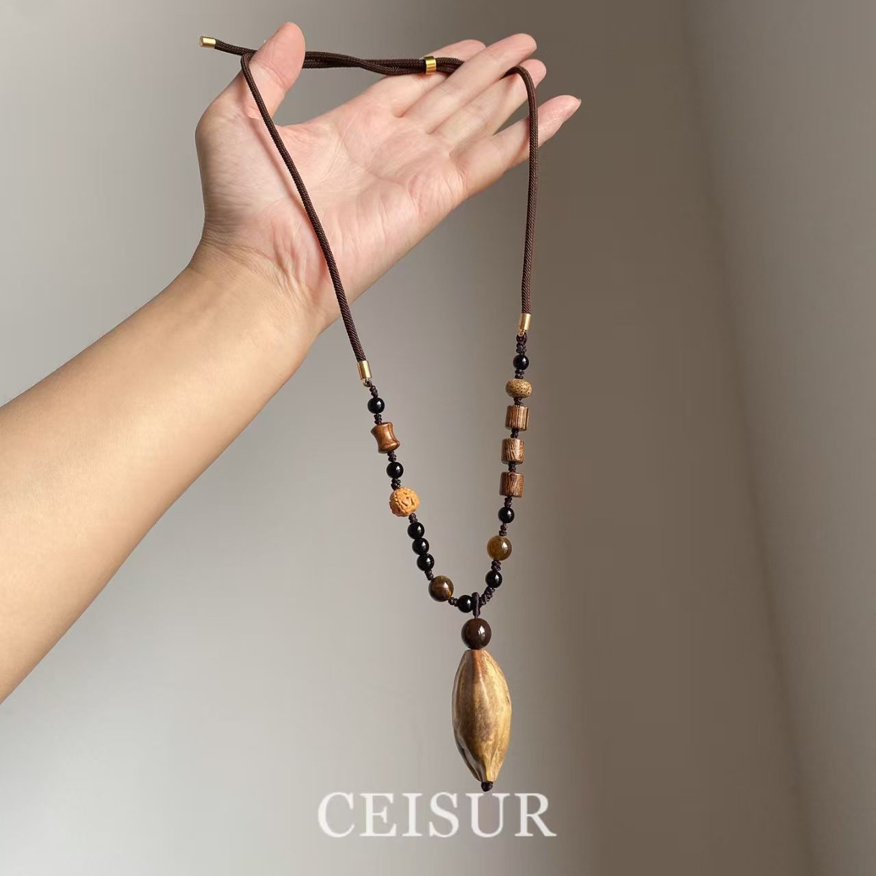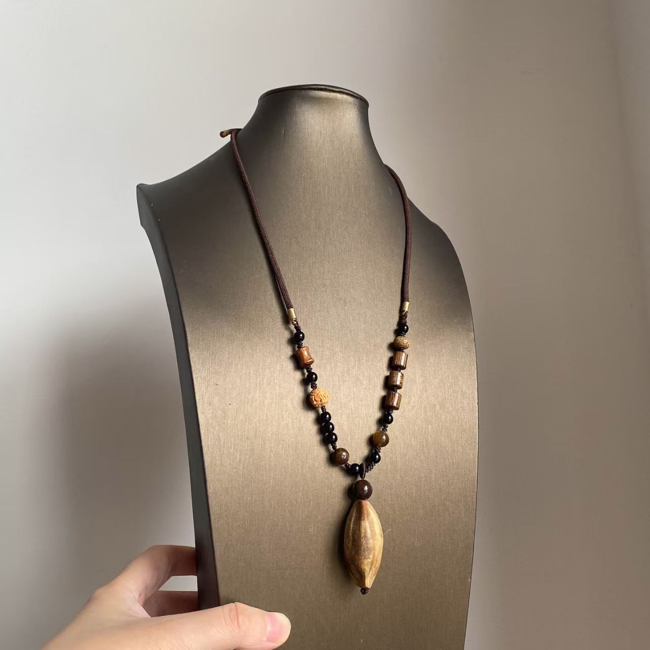 【木犀】新中式波西米亚焦糖色吊坠项链毛衣链复古禅意国风配饰