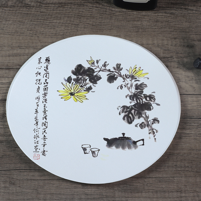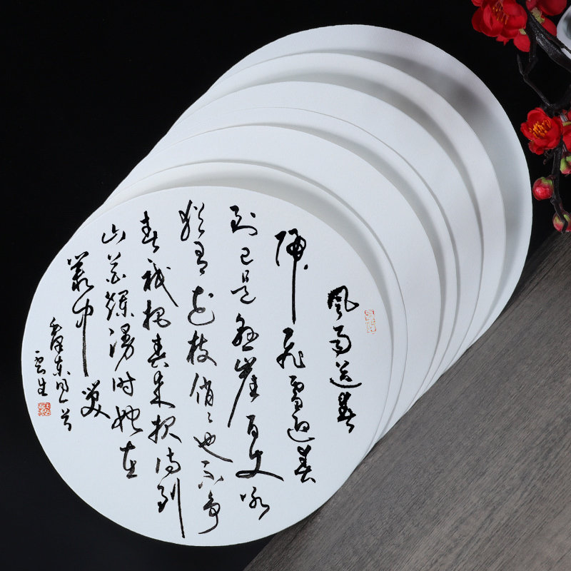 圆形宣纸卡纸加厚国画卡纸画芯生宣软卡书法作品纸空白软卡纸全白软卡全麻软卡直径25cm33cm38cm免装裱宣卡纸