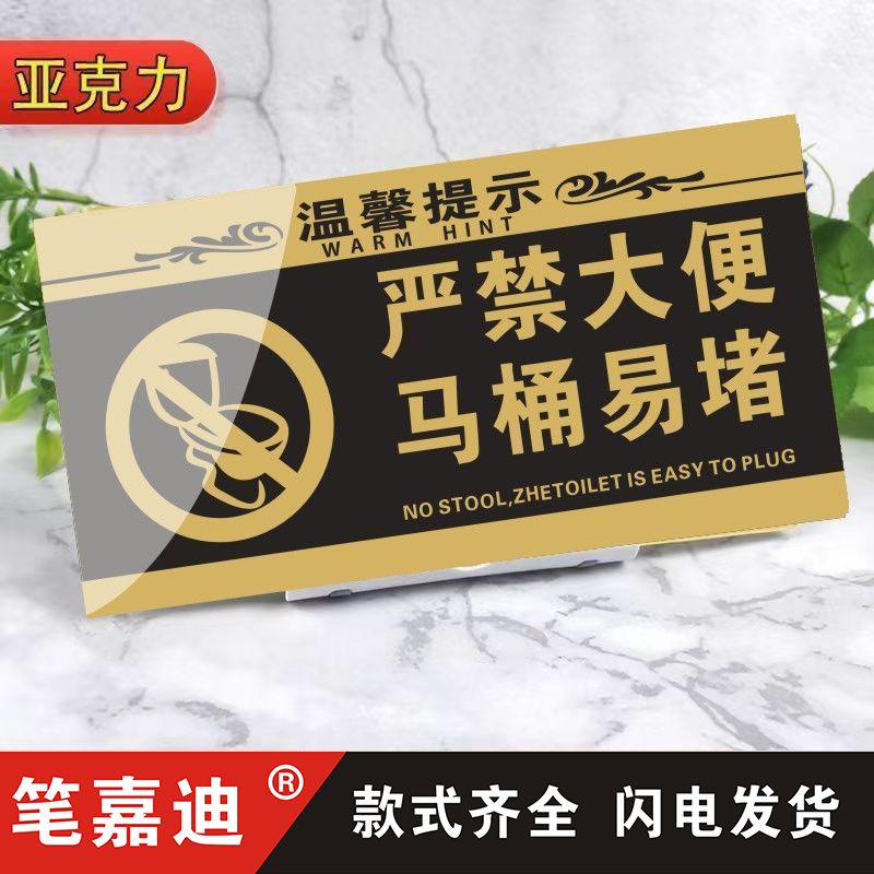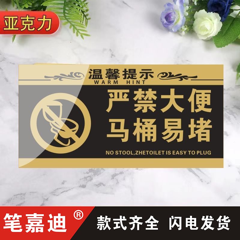 亚克力洗手间标语标识牌禁止请勿大便温馨提示贴卫生间马桶易堵厕