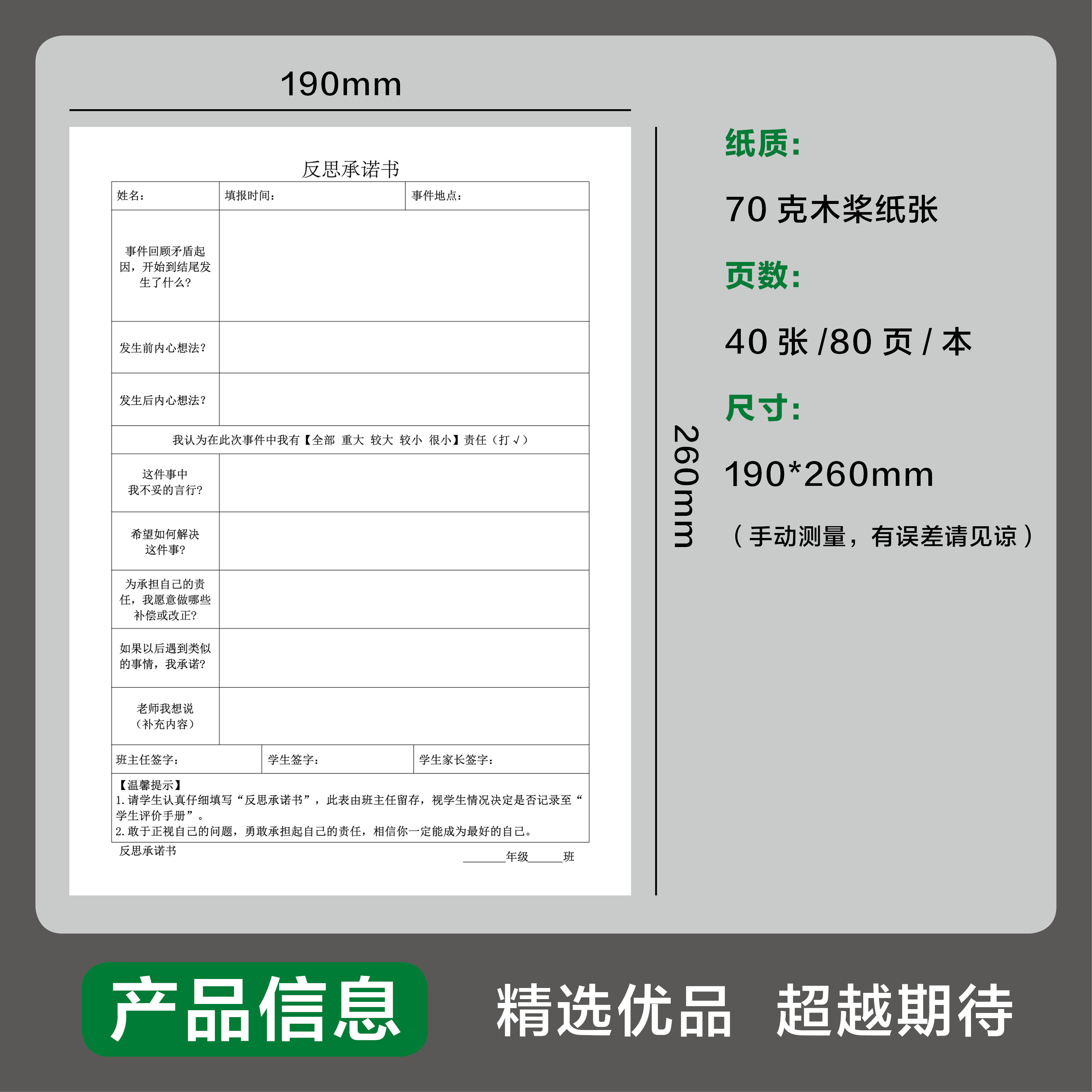 反思承诺书学校通用学生违反校规班级纪律反省表学生自我反省记录