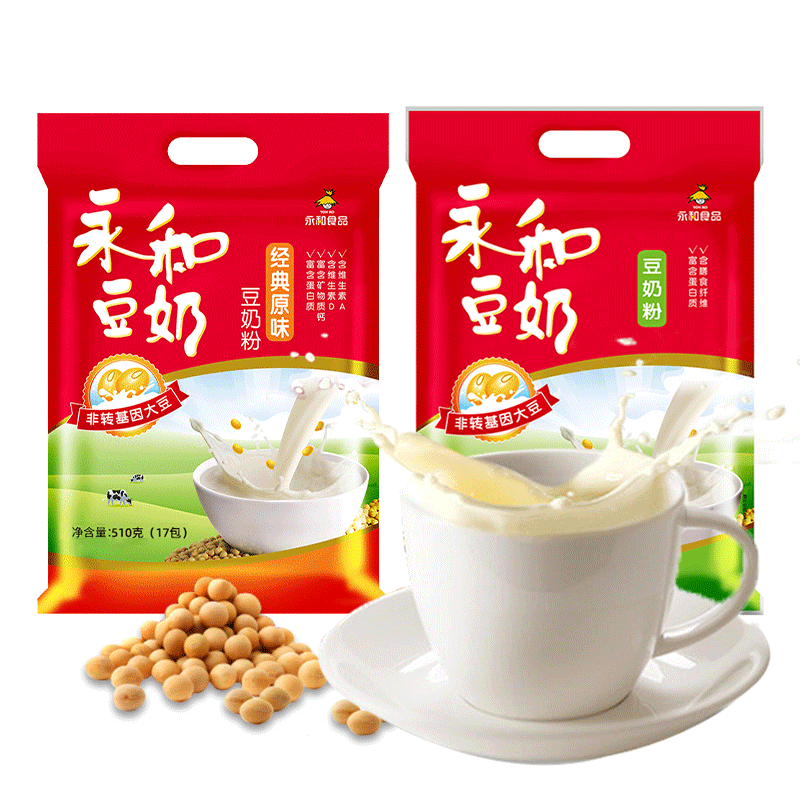 永和豆奶粉510g袋装经典原味无蔗糖非转基因甜豆浆粉速溶豆粉冲泡