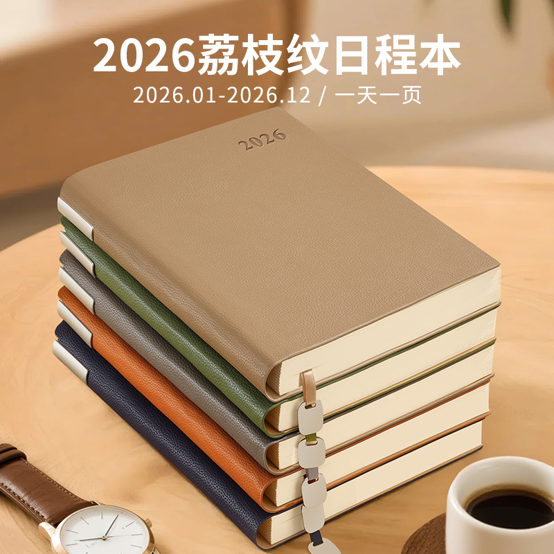 2026年日程本365天时间管理效率手册自律打卡本羊巴皮面笔记本子A4商务简约手账本日历本计划本定制可印logo