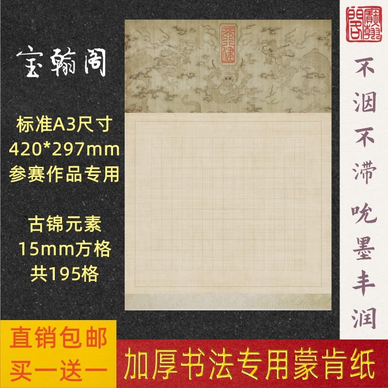 宝翰阁a3硬笔书法专用百克蒙肯纸方格作品纸免装裱小楷秀丽笔参赛