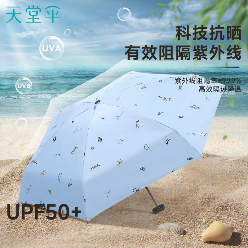 天堂伞正品扁五折遮阳伞手机伞黑胶防晒防紫外线太阳伞轻小便携女