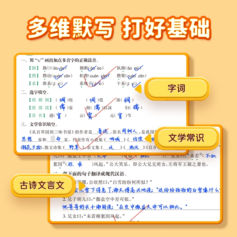 【易蓓直营】初中语文睡前默写同步新版课本字词古诗文言文知识点文学常识考点大全七八九年级上下册初一二三课堂预复习教辅资料1