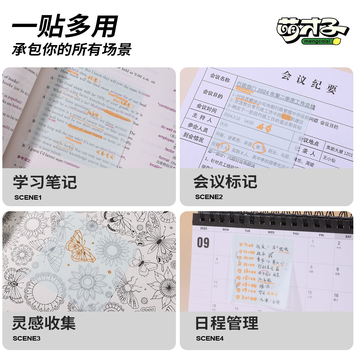 萌才子【抽纸式便利贴】透明单手可取学生做笔记错题护张贴便签临