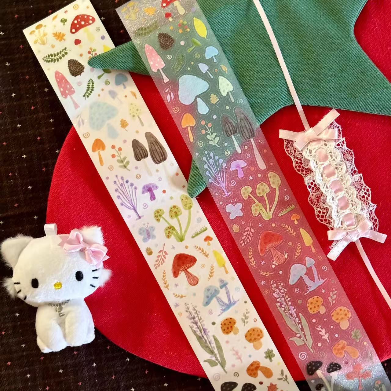 If sept水彩蘑菇林间絮雨小小漩涡森林贴纸卷分装日系童趣胶带