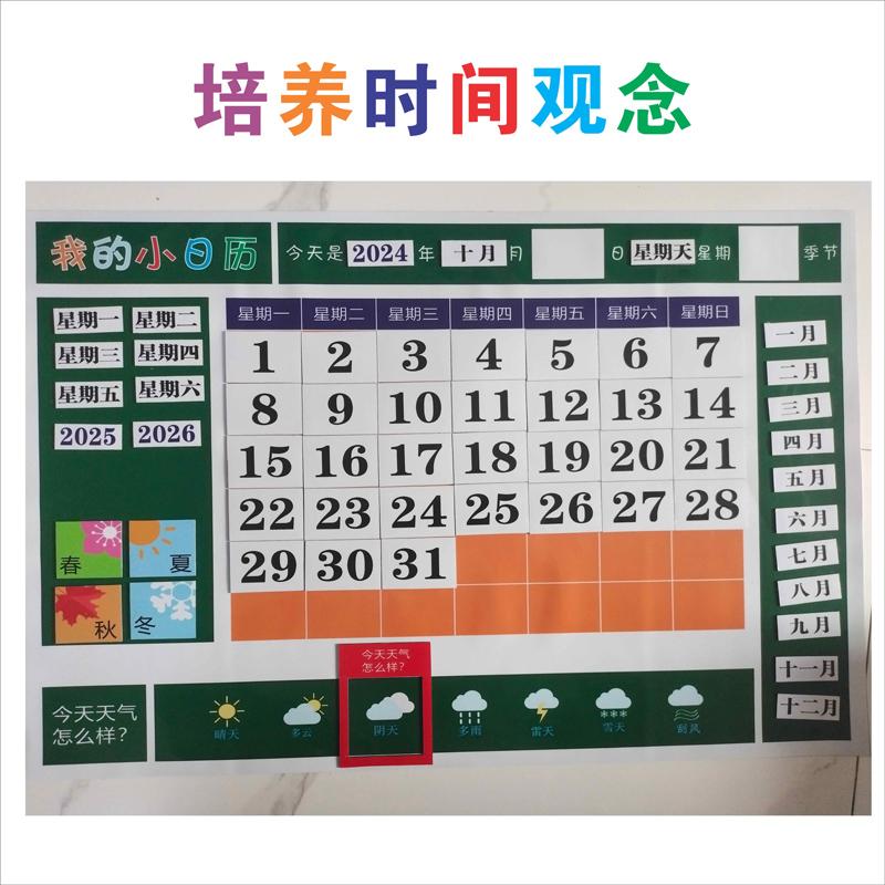 磁性日历天气星期日期季节益智玩具教具儿童早教幼儿园磁贴认知卡