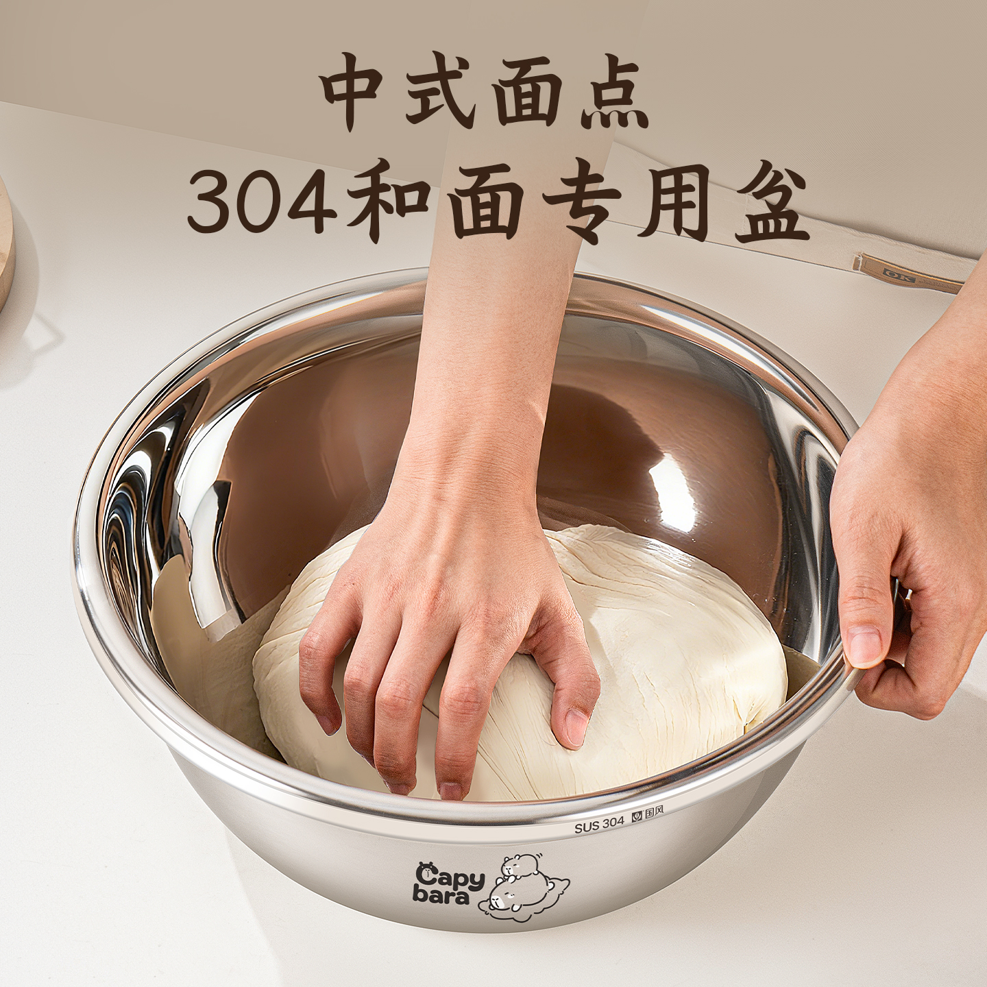 和面盆带盖304不锈钢盆食品级家用醒面盆烘焙专用盆发面盆揉面盆