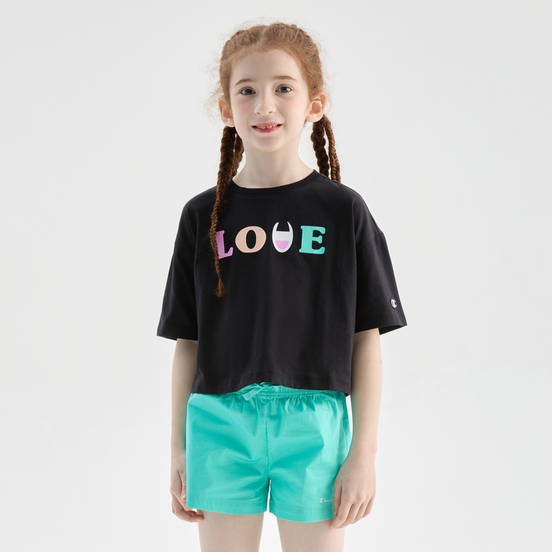 champion冠军儿童装25夏季新款女大小童运动时尚百搭高腰短袖T恤