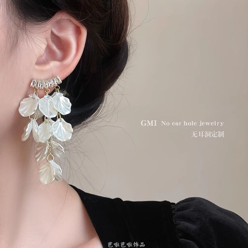 海边度假风贝壳长款流苏耳夹无耳洞女轻奢高级感小众耳环夸张耳饰