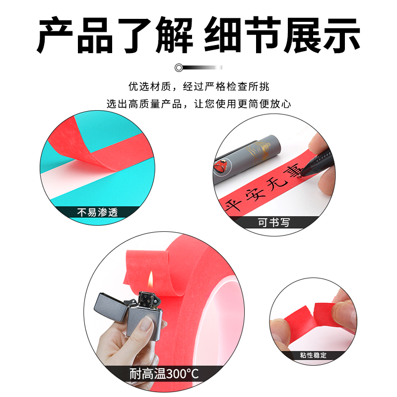 易手撕红色耐高温美纹纸胶带汽车美容真石漆美缝用贴边装饰胶带