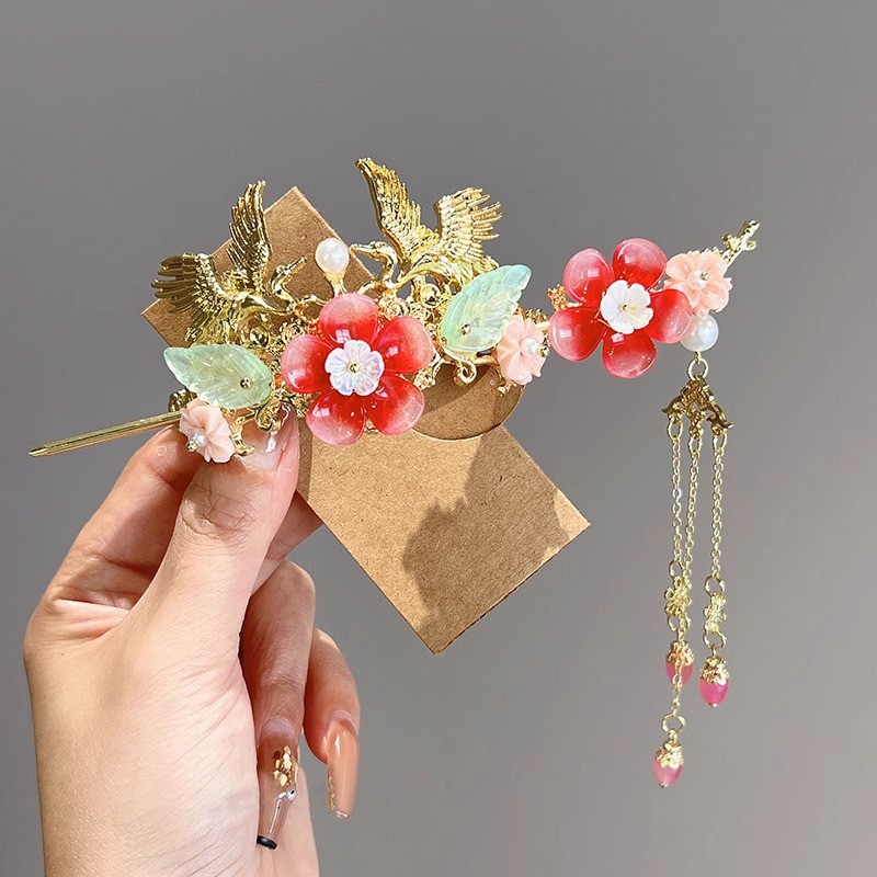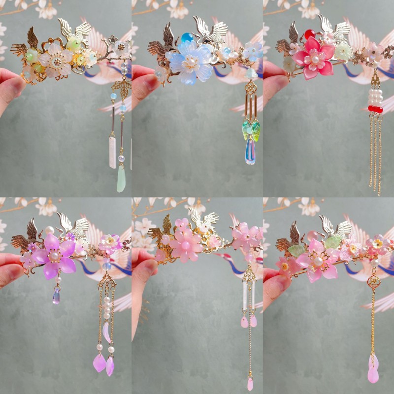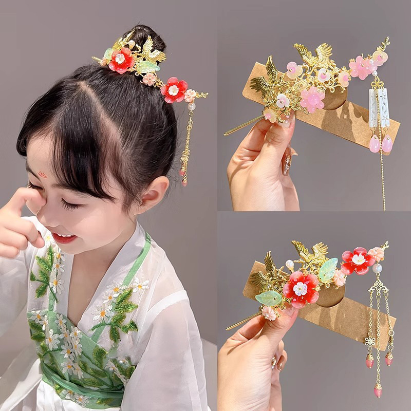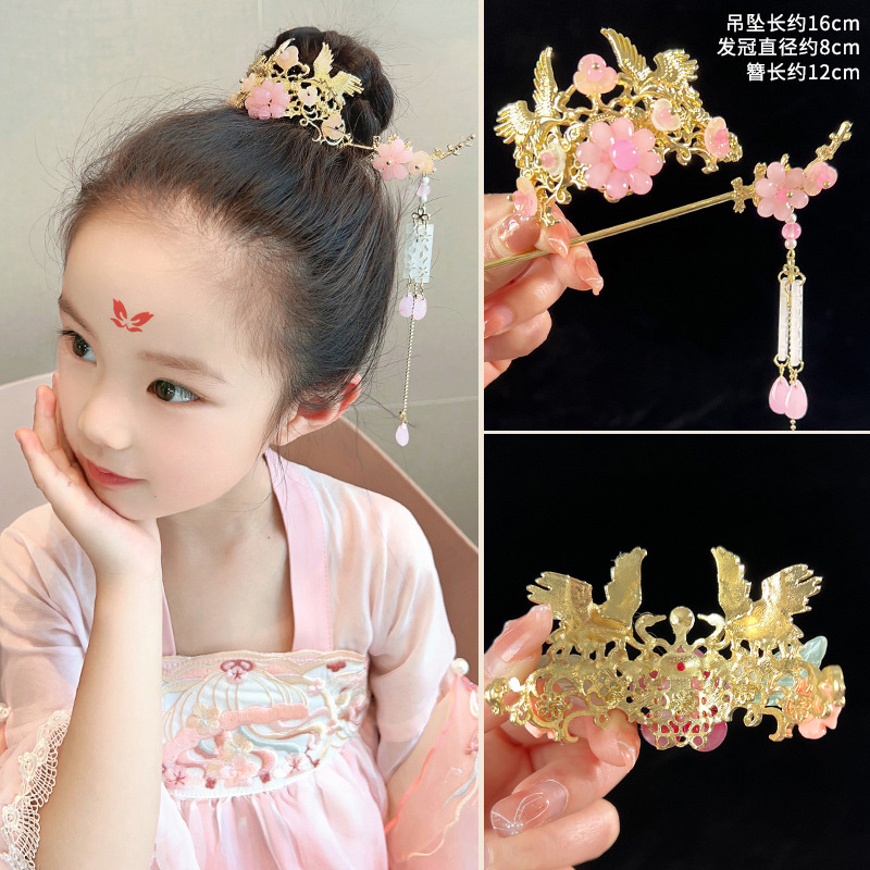 中国风儿童发冠女童汉服头饰古风女孩步摇流苏发饰超仙丸子头发钗