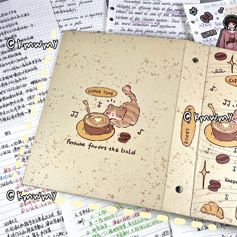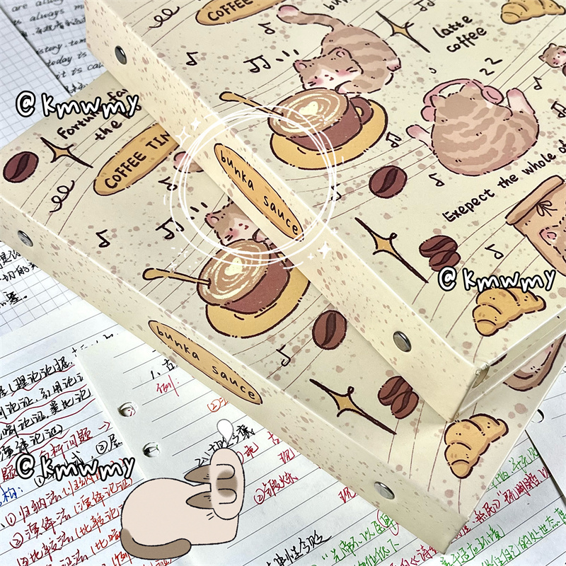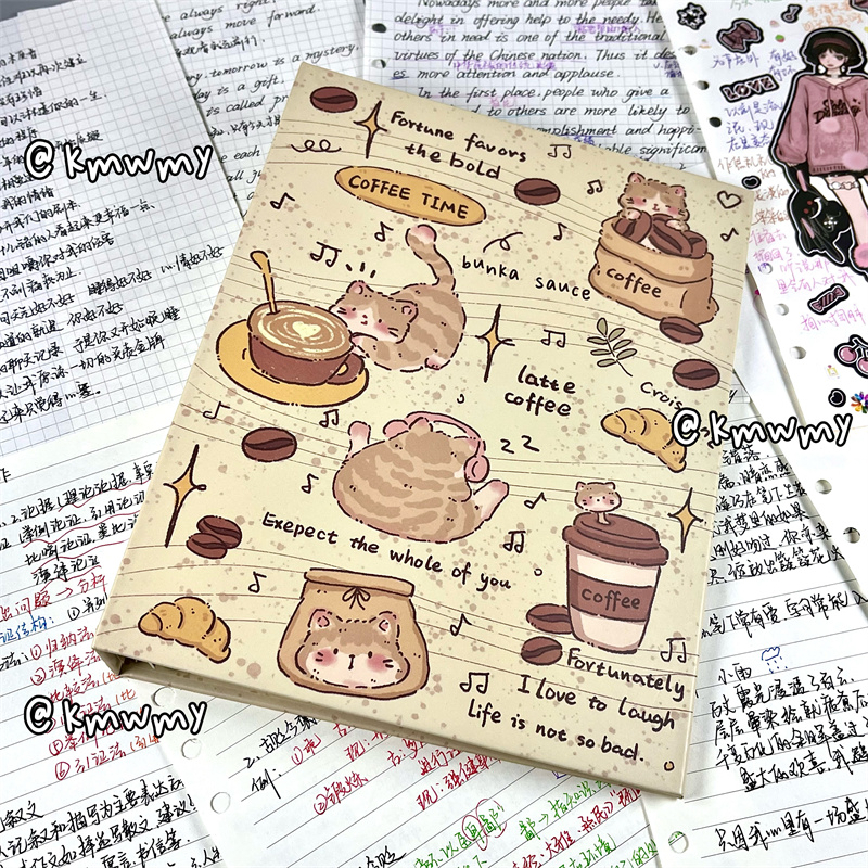 咖啡午茶小猫A5活页学生笔记本可爱风可拆卸加厚硬壳diy手账日记