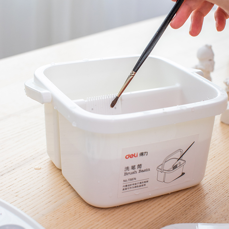 得力洗笔桶二合一便携手提涮笔筒多功能画具美术生专用国画颜料水彩水粉带绘画小水桶带齿阶