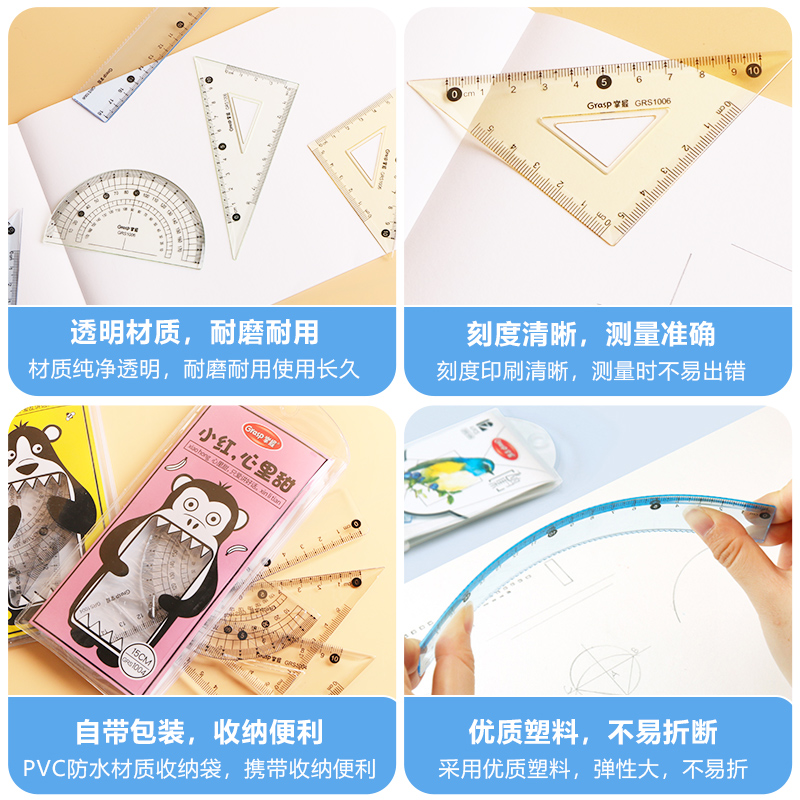 掌握学生尺子套尺考试绘图测量写字文具三角尺直尺初中生一套量角器儿童多功能圆规套尺卡通可爱简约好用