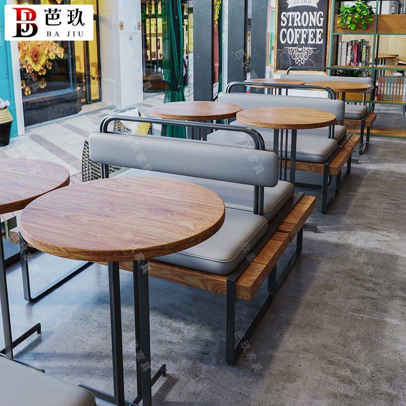 网红餐饮卡座沙发桌椅组合甜品店咖啡厅茶餐厅饭店酒吧休闲实木桌