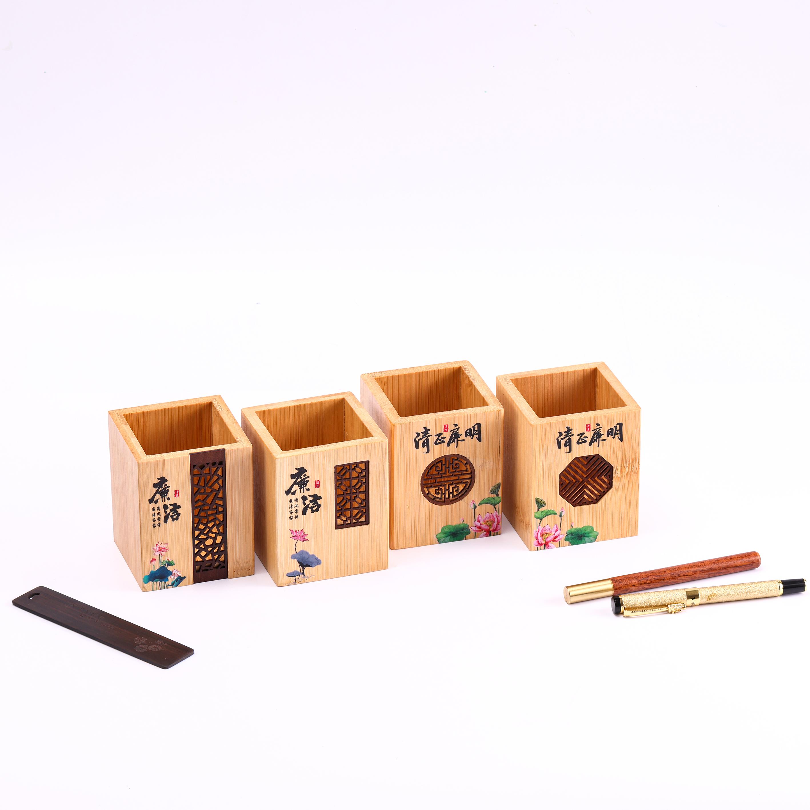 廉政文创礼品竹木笔筒清廉正气廉洁自律励志笔筒摆件工艺品镂空