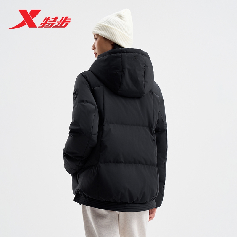 特步有暖气羽绒服女款2025冬季加厚连帽外套保暖防泼水羽绒上衣女