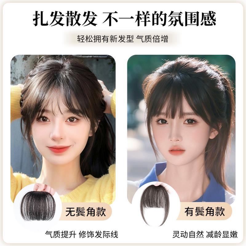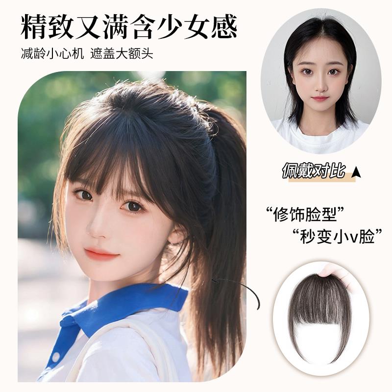 假刘海全真人发假发女片头顶自然前额法式空气刘海发际线假发贴片