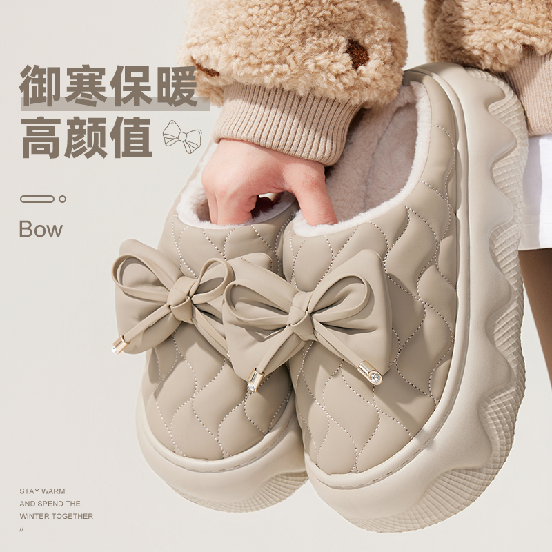 厚底时尚蝴蝶结棉拖鞋女冬季学生室内家居2025新款防滑防水半包跟