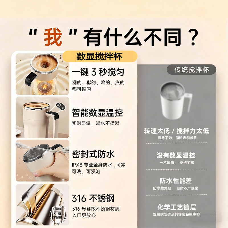 咖啡杯全自动搅拌杯充电智能液晶温度显示摇摇杯316不锈钢保温杯