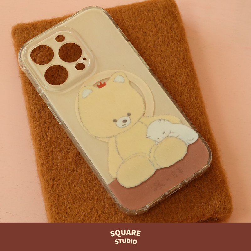 【平方Studio】皮革联名手机壳 艺术家原创可爱猫狗小象小熊手绘创意苹果iPhone磁吸支架