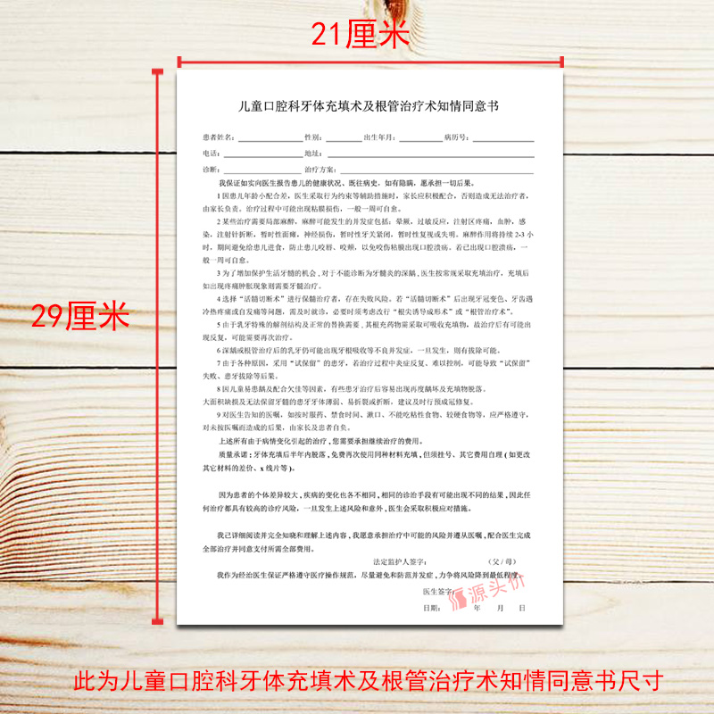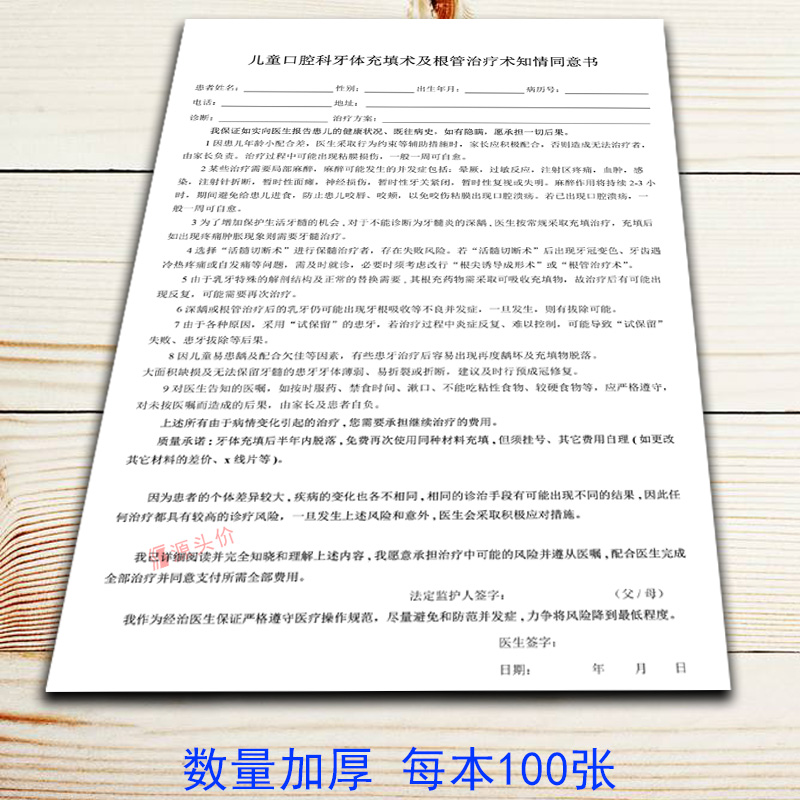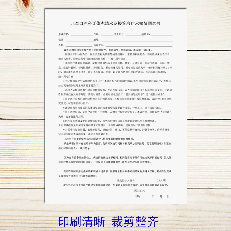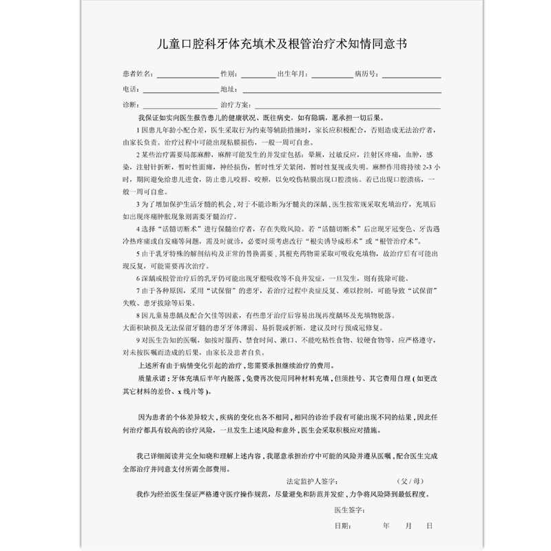 儿童口腔科牙体充填术及根管治疗术知情同意书