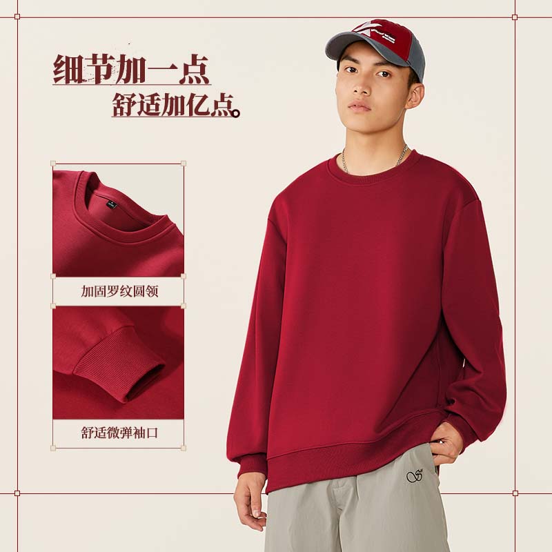 NN真维斯卫衣男秋冬季2025新款重磅酒红上衣青少年宽松休闲套头衫
