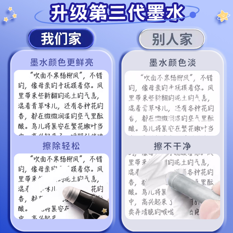 舒写软握可擦中性笔 热敏可擦摩易擦中性笔按动式小学生专用三年级防手指茧的笔魔力擦黑色晶蓝笔芯高颜值0.5