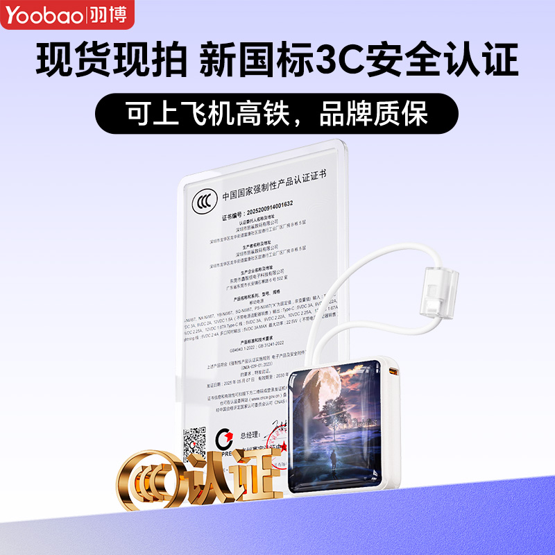 【3C认证可上飞机】羽博2025新款卡通画风景充电宝自带线10000毫安超级快充22.5W迷你移动电源适用华为苹果16