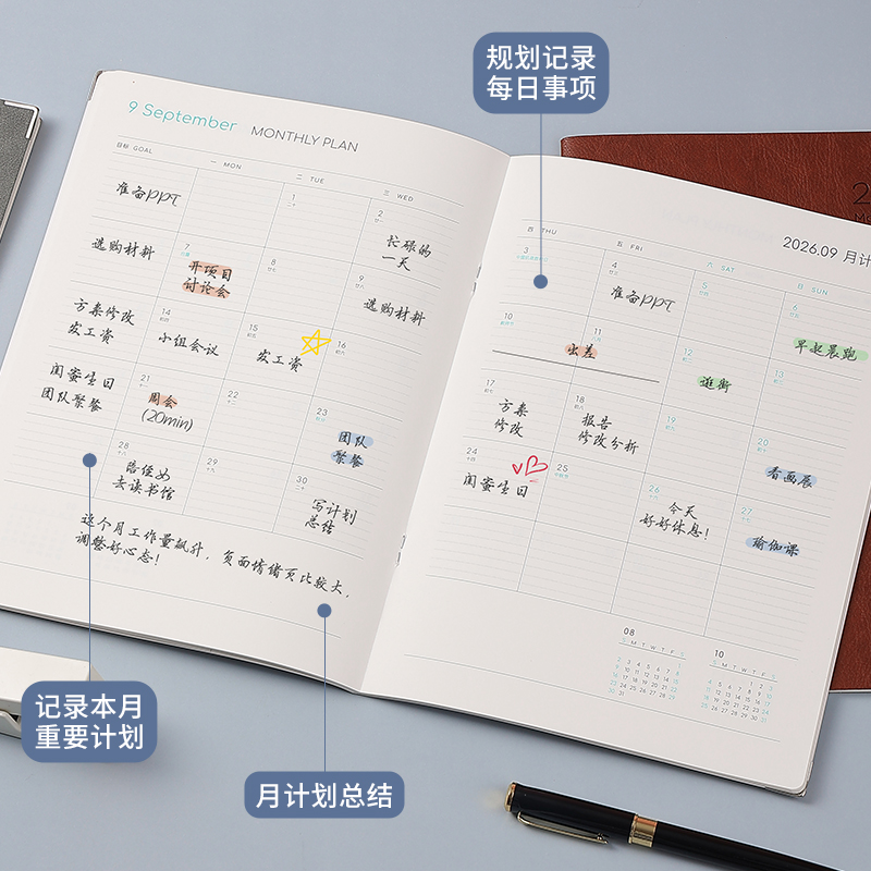 英力佳日历记事本工作小秘书年历本月计划本2026年日程本日志本时间管理效率手册带日期的笔记本本子定制logo