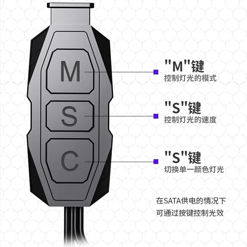 三针ARGB转接线控制器SATA供电/大4P供电机箱风扇灯带黑色白色