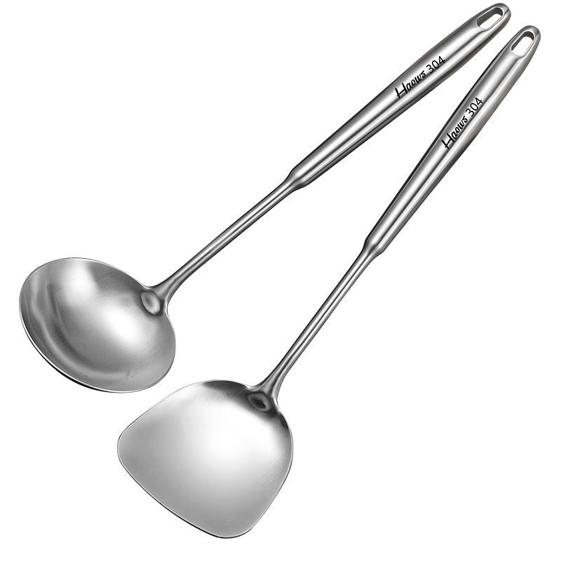 Haows家用304不锈钢炒菜铁铲子锅铲煎铲汤勺加厚厨具套装全套一体