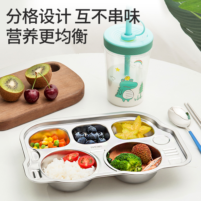 不锈钢分格儿童餐盘男孩幼儿园宝宝卡通分隔餐具学生女孩分餐盘子
