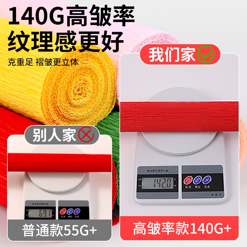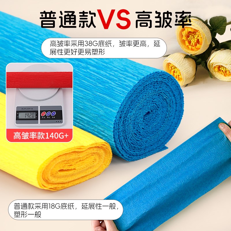 高皱率绿色系皱纹纸手工花材料彩色褶皱纸幼儿园立体花加厚皱纸