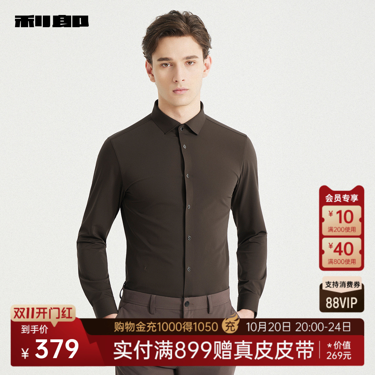 利郎官方衬衫男2025秋季新款商务休闲纯色易搭配尖领修身男装衬衣