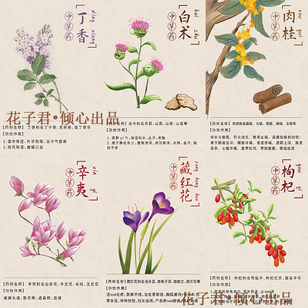 126张每日认识一味中草药贴纸中医药学小知识贴画diy手账桌面电脑
