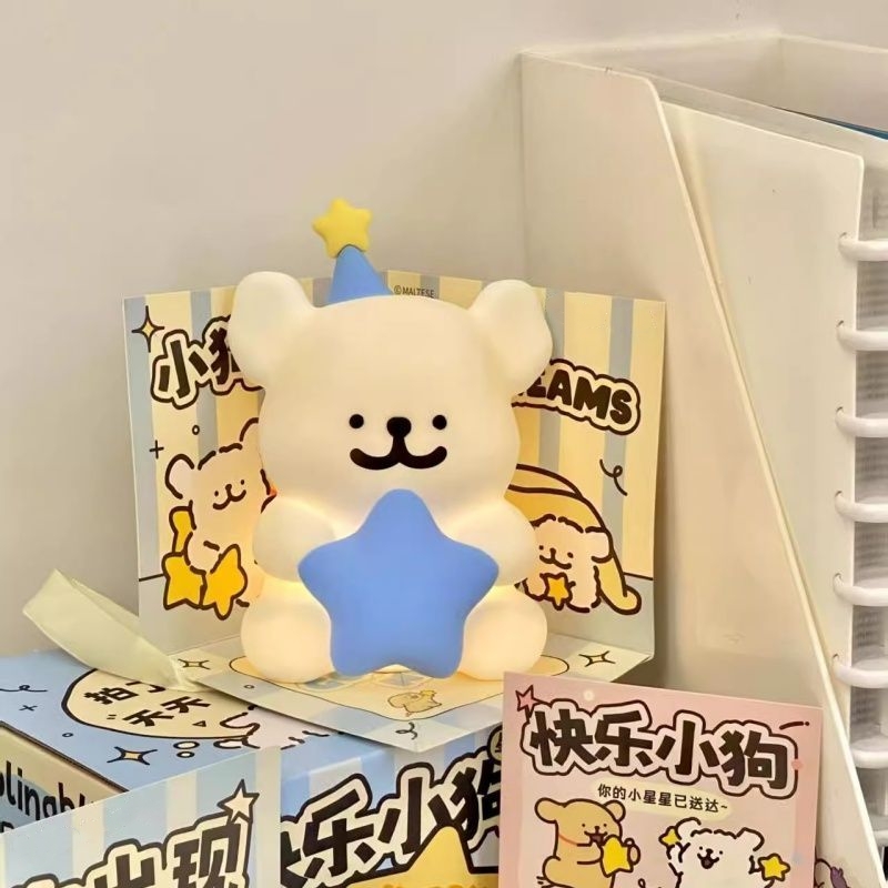 可爱线条小狗夜灯卧室床头灯拍拍灯柔光可爱摆件女生情侣生日礼物儿童婴儿喂奶护眼夜间伴睡台灯拍拍灯