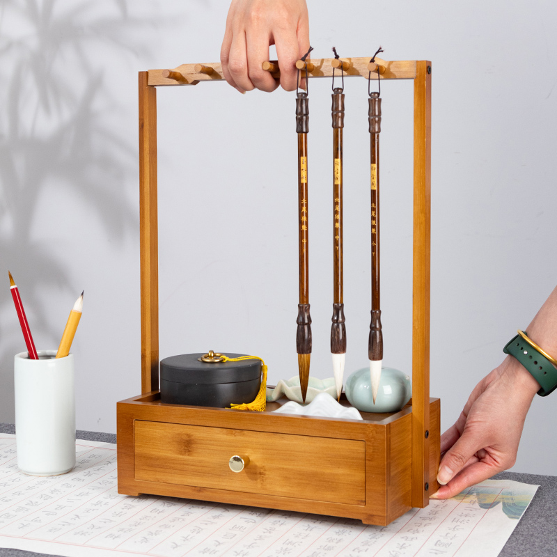 御宝阁笔架毛笔架楠竹笔挂实木毛笔挂新中式多功能毛笔挂架收纳置物架文房四宝摆件书法收纳架挂毛笔的笔架托