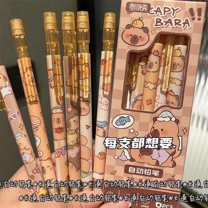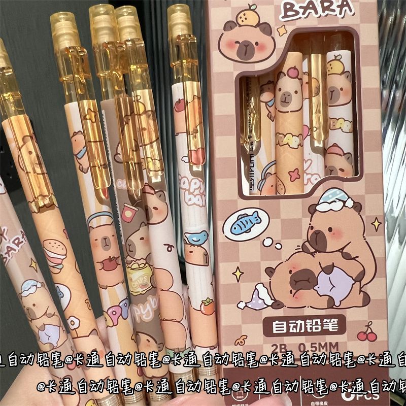 卡通自动铅笔0.5mm送加长替芯小学生一二年级用卡皮巴拉活动铅笔