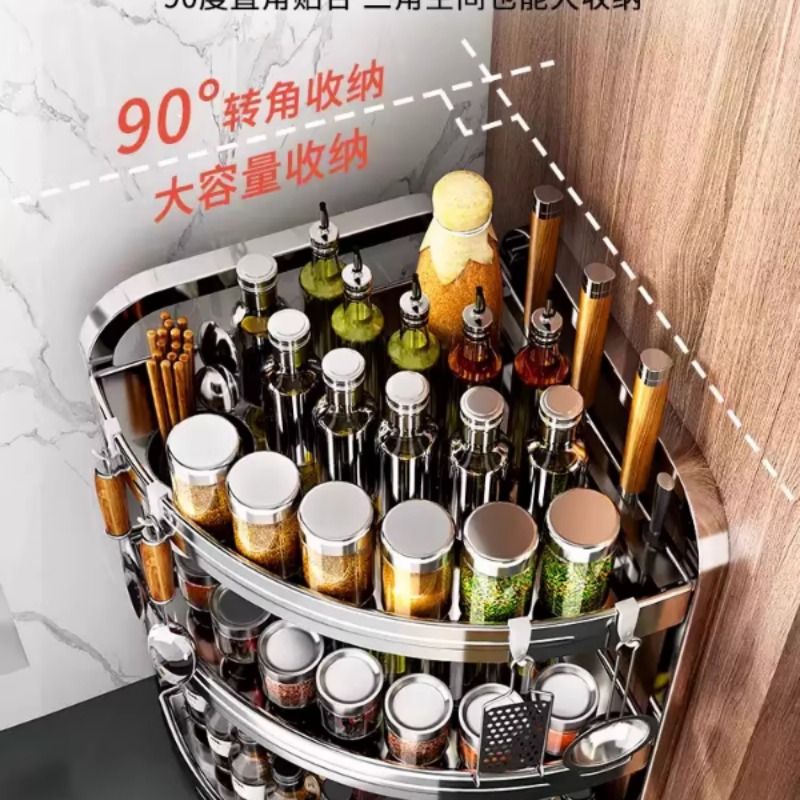 厨房置物架多功能调味品调料架盐调味罐台面三角不锈钢墙角收纳架
