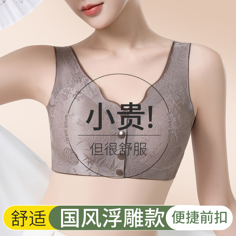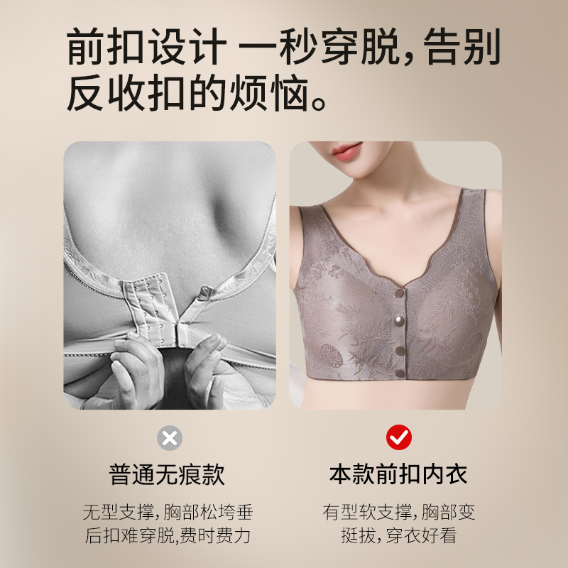 法前开扣妈妈内衣无痕美背大码文胸无钢圈聚拢蕾丝全罩杯背心式