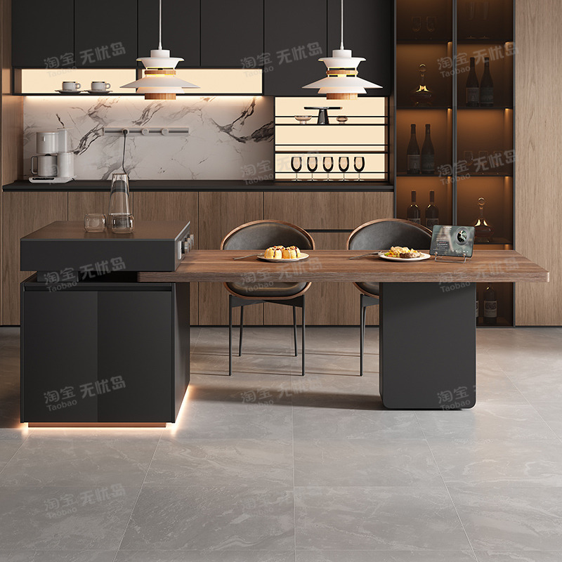 定制意式极简倒小户型开入式厨房可伸缩岩板岛台餐桌一体家用导台