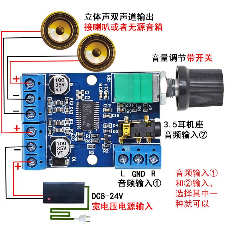 30Wx2大功率立体声数字功放板12V24V供电DIY小音箱制作模块AP3015